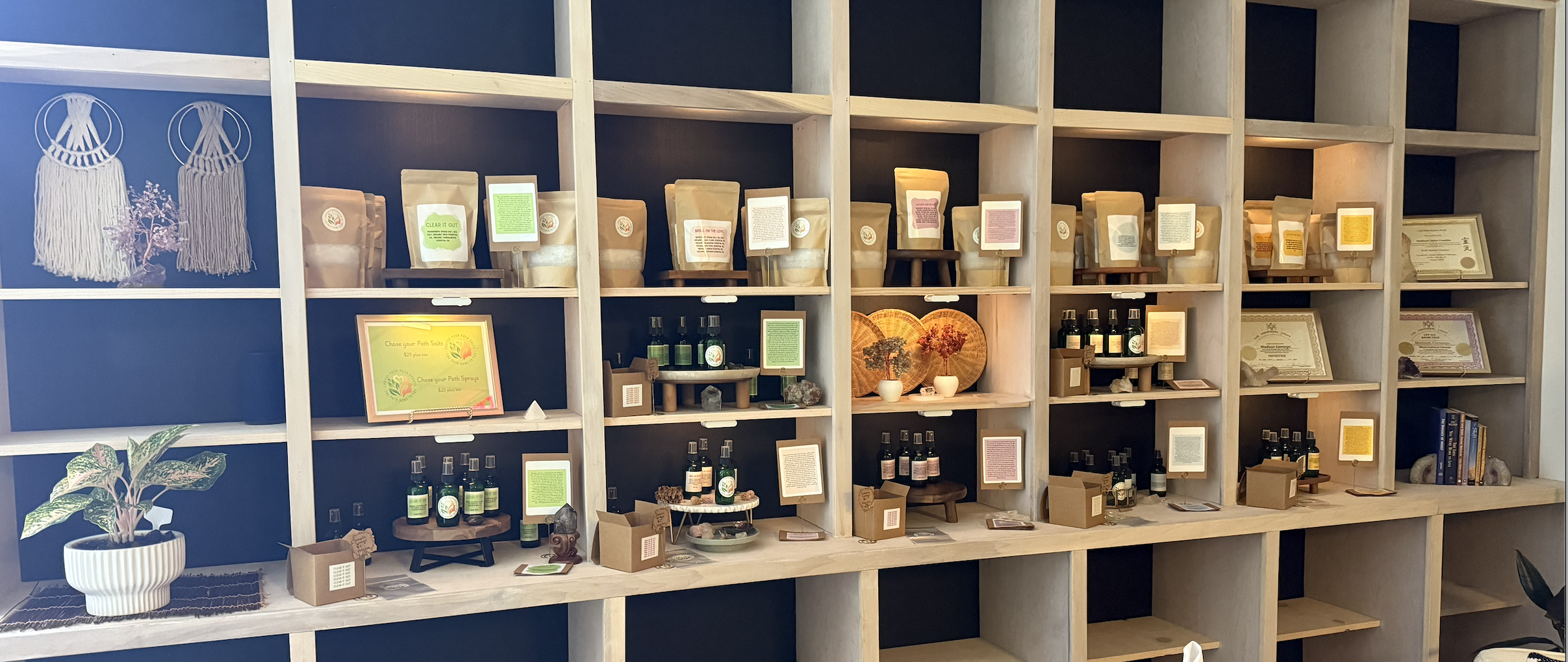 Embark on a transformative journey of self-discovery and self-empowerment with our handcrafted Path Salts and Path Sprays, each designed to guide you on the path home to your true self. Our Path Sprays feature seven unique scents, each thoughtfully blended with organic essential oils to embody a specific intention—whether to ignite clarity, foster courage, or nurture inner peace. Every mist becomes a sacred ritual, enveloping you in aromatic harmony to center your spirit and empower your authentic essence. Complementing these, our Path Salts offer five distinct scents, crafted with premium organic essential oils, sea salt, and Epsom salt to dissolve barriers and restore balance. Each luxurious soak transforms your bath into a sanctuary of self-discovery, grounding your soul and illuminating the truth of who you are. Together, these creations invite you to embrace your inner strength and find your way home to you through intentional aromatherapy.